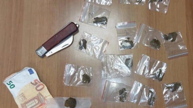 Immediatamente controllato e su invito degli agenti, il minore ha consegnato l’involucro che aveva precedentemente tentato di nascondere, constatando che, al suo interno, vi fosse la droga. Sottoposto a un’ispezione più approfondita, gli agenti hanno riscontrato il possesso di ulteriori 14 involucri, pari a 24, grammi 7 della stessa sostanza, occultati in una tasca del giubbotto. Nel corso del controllo, il giovane è stato altresì trovato in possesso di un coltello a scatto della lunghezza complessiva di 19 cm., anch’esso sequestrato poiché detenuto in maniera ingiustificata.