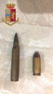 Al fine di avere certezza sul tipo di munizionamento rinvenuto nella tasca, previa autorizzazione del Pubblico Ministero di turno, è stato nominato un ausiliario di Polizia Giudiziaria, che ha classificato le due cartucce come munizionamento Nato da guerra e pertanto si è proceduto con l’arresto. Al termine delle formalità di rito, è stato sottoposto agli arresti domiciliari presso la sua abitazione.