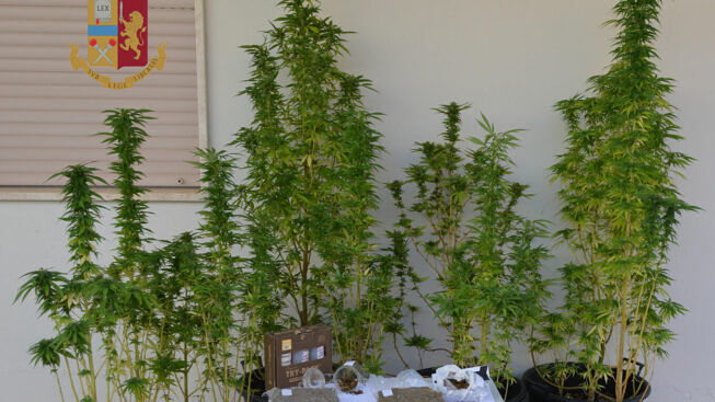 All’esito di una complessa attività d’indagine, gli investigatori hanno rinvenuto sul terrazzo della residenza del giovane, già noto alle Forze dell’Ordine, dieci piante “vive”, in vaso, di marijuana di varia altezza (da circa 170/175 centimetri circa 100/120 centimetri); all’interno di un frigo in disuso, sempre sulla stessa logia, sono state scoperte 2 grosse buste in cellophane trasparenti termosaldate, contenenti sostanza vegetale essiccata, risultata, poi, marijuana per un peso complessivo di circa 700 grammi; ancora, in un cassetto di un mobile della cucina, un altro involucro contenente circa 75 grammi di marijuana, un bilancino elettronico di precisione, perfettamente funzionate e un barattolo in vetro contenente circa 6 grammi della stessa droga.