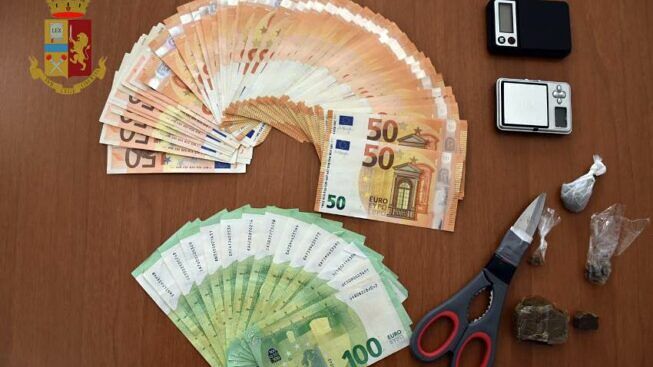 Entrati nell’abitazione, infatti, durante la perquisizione, i poliziotti hanno rinvenuto in vari punti nascosti della casa complessivamente circa 40 grammi di hashish, circa 2 grammi di marijuana, tutto il necessario per il confezionamento, tra cui forbici, bilancini di precisione e bustine in cellophane.