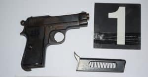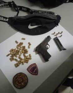L’attività di controllo e perquisizione svolta sulla persona e sul mezzo hanno consentito di rinvenire, all’interno di un marsupio indossato dallo stesso, una pistola Calibro 7,65 con matricola abrasa con all’interno un caricatore contenente 4 cartucce G.F.L. 7,65 mm e 1 cartuccia W-W auto 32. Inoltre, nascoste all’interno del sottosella, sono state rinvenute altre 44 cartucce calibro 320 AUTO.