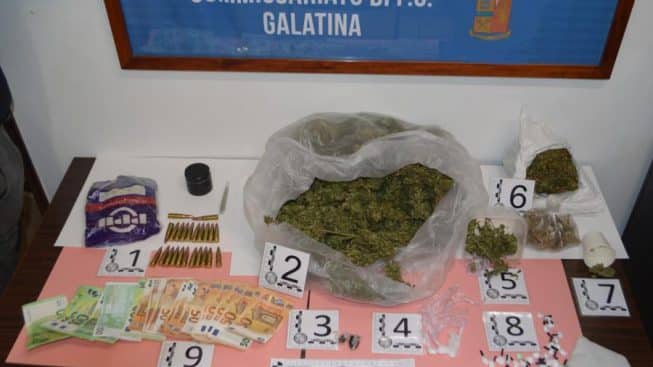 Durante la perquisizione è stato rinvenuto oltre 1 chilo e 200 grammi di marijuana, 32 involucri con all’interno cocaina già pronti alla vendita, una modica quantità di hashish e 23 proiettili per arma lunga tipo “kalashnikov“, oltre alla somma in contanti di 1.400 euro, ritenuti provento dell’attività di spaccio.