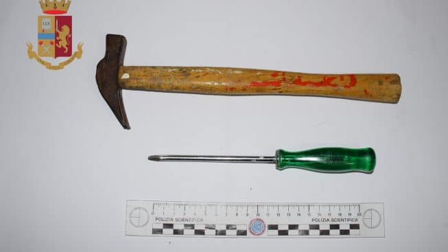Giunti sul posto, gli agenti hanno individuato la persona segnalata, che è stata prontamente bloccata mentre aveva ancora tra le mani un cacciavite e un martello, sottoposti a sequestrato.