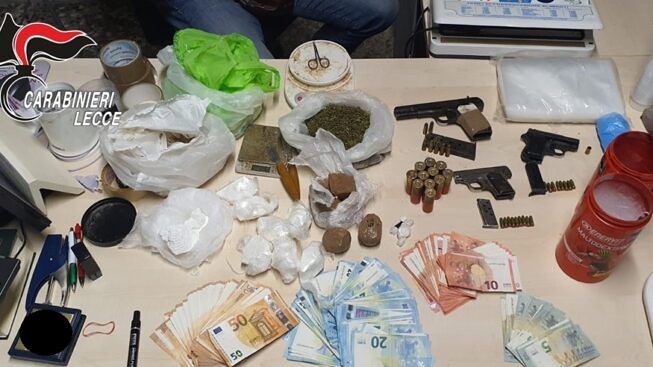 Un’imponente operazione antidroga, quella svolta dai Carabinieri del Comando provinciale di Lecce, che ha portato all’arresto di una persona e al sequestro di eroina, marijuana, cocaina, armi e denaro contante.