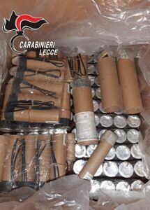 A seguito della verifica, gli uomini della “Benemerita”, hanno rinvenuto 176 kg di materiale esplodente per utilizzo professionale pirotecnico, di cui 18 privi di classificazione.