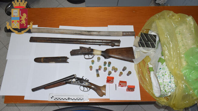 La successiva perquisizione ha permesso agli agenti di recuperare l’involucro lanciato dall’uomo tra le sterpaglie del terreno vicino. All’interno c’erano due fucili, entrambi con la matricola abrasa. Un calibro 16 a canne mozze ed un calibro 12 a canne sovrapposte, oltre a cartucce di vario calibro e tre detonatori.