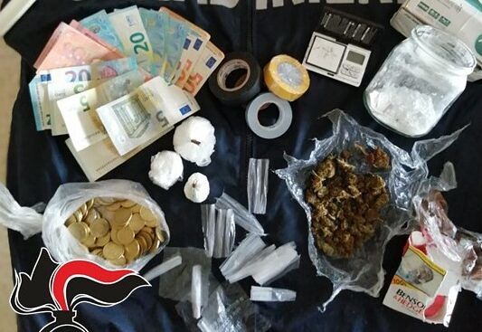 I militari, al termine di una perquisizione all’interno dell’abitazione del 44enne, hanno scoperto 19 grammi di marijuana; 40 grammi di cocaina; 1 bilancino di precisione; varie buste di cellophane; nastro isolante per il confezionamento e banconote di vario taglio.