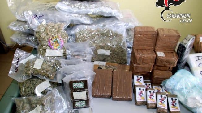 Nello specifico l’uomo, a seguito di una perquisizione personale e domiciliare, è stato sorpreso a detenere nel garage di sua proprietà e in uso esclusivo: 21,4 kg di cocaina; 9,120 di hashish; 3,110 di eroina; 10,670 di marijuana;