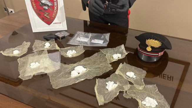 Durante una perquisizione domiciliare, i militari dell’Arma hanno rinvenuto 135 grammi di cocaina, suddivisi in nove involucri, nascosti nell’intercapedine della parte superiore di una porta blindata. Accanto alla droga, un piccolissimo bilancino di precisione e materiale per il confezionamento delle dosi, probabilmente pronti per essere immessi sul mercato.