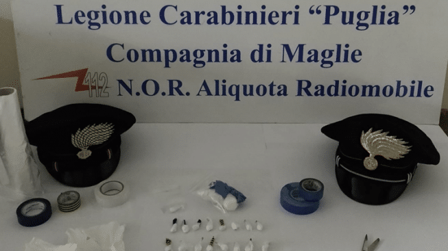 Servizi finalizzati alla prevenzione ed alla repressione dello spaccio di sostanze stupefacenti sono quotidianamente svolti dai Carabinieri del Comando Provinciale di Lecce ed è stato proprio questo il contesto nel quale, nella serata di ieri, i militari dell’Aliquota Radiomobile della Compagnia di Maglie, insieme ai colleghi della Sezione Operativa locale, hanno arrestato un 57enne salentino per detenzione ai fini di spaccio di sostanzi stupefacenti.