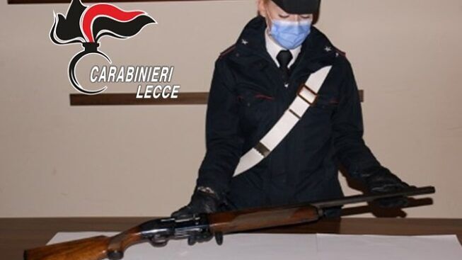 Nello specifico l’uomo, in seguito a una perquisizione domiciliare è stato trovato in possesso di: un fucile da caccia marca Beretta cal. 12, risultato oggetto di furto in abitazione, denunciato il 21 agosto 2017, presso la stazione dell’Arma di Calimera; una pistola semiautomatica marca Victoria cal. 6,35, con matricola abrasa completa caricatore; 10 cartucce cal. 12 e 6 cal. 6,35 occultate all’interno di un cofanetto in plastica.