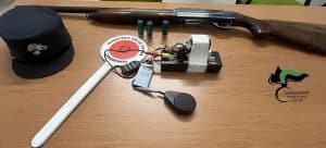 Per lui è scattato l’ arresto, disposto dal magistrato presso il domicilio; sono stati contestati i reati di cui agli articoli 4 e 7 della L. 895/1967 (porto abusivo di arma comune da sparo), articoli 56, 624 e 625 del Codice Penale (tentato furto venatorio aggravato) e art. 30, comma 1, lettera h) della L. 157/1992 (per utilizzo di richiamo elettroacustico).