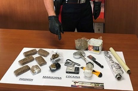 6 panetti di hashish pari a circa 600 grammi, 2 involucri di quasi 80 grammi di “marijuana” e 2 dosi di “cocaina” pari a gr. 0,6 grammi: questo è ciò che veniva trovato dapprima addosso e poi nella propria abitazione di Matino a Giorgio Bove, 24enne nato a Casarano.