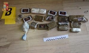 Inoltre sono stati rinvenuti circa 6 Kg. di marijuana, circa 1.6 kg. di hashish, due pistole di piccolo calibro, una delle quali con matricola abrasa e numerosi proiettili di vario calibro.