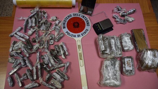 I sospetti sono stati confermati durante le perquisizioni. Il primo controllo ha consentito ai poliziotti di recuperare il denaro pagato per la cessione appena osservata. Nell’abitazione, invece, sono stati trovati 661,5 grammi di hashish, suddivisi in 61 dosi già confezionate con del cellophane trasparente, pronte per la vendita.