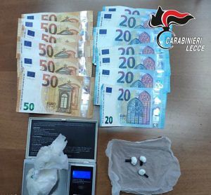 Droga, denaro e kit sono stati sequestrati mentre per il 33enne, una volta concluse le formalità di rito si sono aperte le porte del Carcere di Lecce.