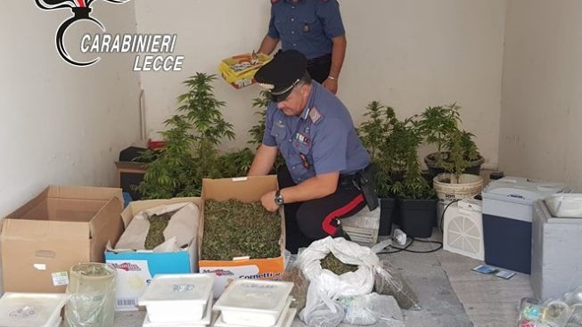Oltre alle piante, sono stati rinvenuti anche 17.5 chili di marijuana pronta per essere ceduta ed tutto il materiale necessario per il confezionamento delle dosi. Il tutto è stato sequestrato. Una volta concluse le formalità di rito, per il 36enne, arrestato in flagranza di reato, si sono aperte le porte del Carcere di Lecce.