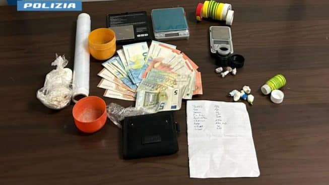 All’interno della cucina, oltre al bilancino di precisione posto su di un piano, ne sono stati rinvenuti altri due riposti all’interno dei mobili e del materiale necessario al confezionamento delle dosi. Rinvenuto anche del denaro contante per un totale di 490 euro.