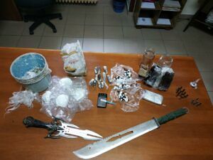 La perquisizione è stata estesa all’autovettura in uso al 47enne e alle pertinenze esterne dell’abitazione, al termine delle quali i Carabinieri hanno rinvenuto: un coltello di genere vietato della lunghezza pari a cm 25 totali; una pistola a salve cal.8 mod. 92/auto priva di tappo rosso, con caricatore, occultata nel cortile sotto mattoni forati in cemento. Si sono posti sotto sequestro, inoltre 2 telefoni cellulari nella disponibilità dell’uomo.