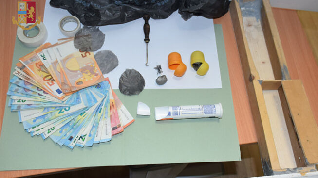 La successiva perquisizione dell’appartamento ha permesso agli agenti di scoprire un altro involucro di cellophane, contenente 3,5 grammi di cocaina nascosti in un incavo ricavato nel muro perimetrale, abilmente camuffato dietro un pezzo di battiscopa reso amovibile.