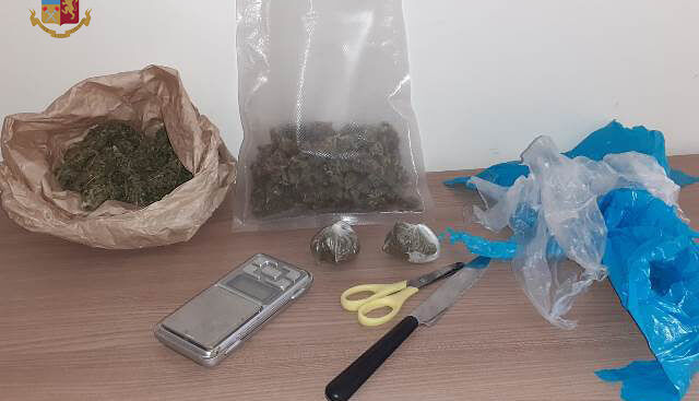 Insospettiti, i poliziotti hanno effettuato subito un controllo più approfondito. E così è spuntato fuori – addosso al fermato – un involucro con circa 10 grammi di marijuana.