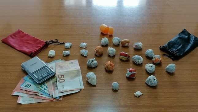 1 involucro con 0,4 grammi di cocaina; 18 involucri contenenti complessivamente 41,8 grammi di marijuana; 5 involucri con 21 grammi di hashish;1 bilancino di precisione e 290euro in contanti. Questo il bottino che l’uomo è stato sorpreso a detenere presso la propria abitazione.