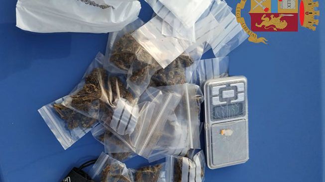 I dubbi sono diventati certezze durante il controllo. Marco Grasso, 27enne del luogo poi finito in manette, ha avuto una reazione imbarazzata di fronte agli agenti della Squadra Mobile e del Reparto Prevenzione Crimine di Lecce che avevano chiesto lumi. Insomma, ha avuto un comportamento ‘impacciato’. E si è tradito. I sospetti sono stati confermati durante la perquisizione dell’auto. Sotto al sedile passeggero, dove poco prima aveva preso posto il 27enne, gli uomini della Polizia hanno trovato una sacca nella quale erano ‘nascosti’ 56 grammi di marijuana. Lo stupefacente era suddiviso in quattordici dosi. Non solo, la borsa conteneva anche un bilancino di precisione e alcune bustine in cellophane necessarie a confezionare i pacchettini da spacciare. Tutto l’occorrente, insomma.