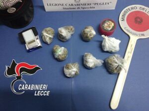 Nella nottata appena trascorsa, poi, a Specchia, i Carabinieri della Stazione locale, a conclusione di un’attività di Polizia Giudiziaria, finalizzata alla prevenzione e repressione dei reati in materia di sostanze stupefacenti, hanno tratto in arresto in flagranza di reato Danilo Mammolo, 19enne, che adesso si dovrà difendere dall’accusa di spaccio di droga.