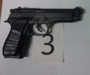 La sera stessa e nei giorni successivi le pressanti attività di investigazione, condotte anche con alcune perquisizioni, hanno permesso di rinvenire in casa di B.G. una pistola a salve “Bruni mod. 92” oltre a 3 cartucce cal. 12, detenute illegalmente.