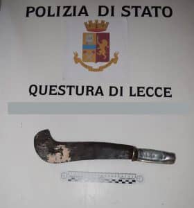 L’uomo, un 24enne di nazionalità nigeriana, in Italia senza fissa dimora, ha giustificato il possesso del machete dicendo che lo usa abitualmente per lavorare nei campi.