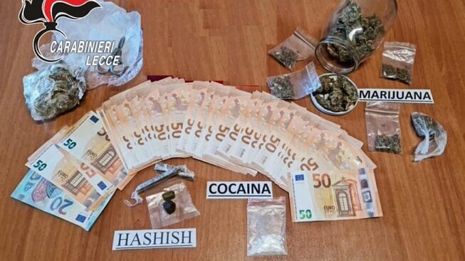 I guai per un 39enne di Racale, arrestato in flagranza di reato, sono cominciati quando i Carabinieri della stazione locale hanno bussato alla porta della sua abitazione accompagnati dai cani antidroga del nucleo cinofili di Modugno per una perquisizione domiciliare. Un controllo che ha permesso agli uomini in divisa di trovare la droga, il materiale necessario per il confezionamento delle dosi e quasi 3mila euro in contanti.