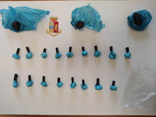 Il pacchetto, recuperato dagli uomini in divisa, conteneva 17 dosi di cocaina per un peso complessivo di circa 21 grammi e 3 dosi contenenti complessivamente circa 15 grammi di hashish.