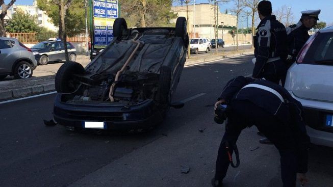 Solo a vedere una macchina capovolta su sé stessa, in viale Roma – più precisamente lungo il tratto stadale che dagli "archi" ricolloca le vetture lungo la circonvallazione (pochi metri prima di entrare nel rione Castromediano) – è possibile comprendere quanto rischioso possa esser stato lo scontro tra due auto avvenuto stamattina, poco prima di mezzogiorno. Le dinamiche del sinistro stradale risultano ancora poco chiare, sebbene spetterà agli agenti della Municipale fare ordine sulla vicenda, comprendendone bene i dettagli.