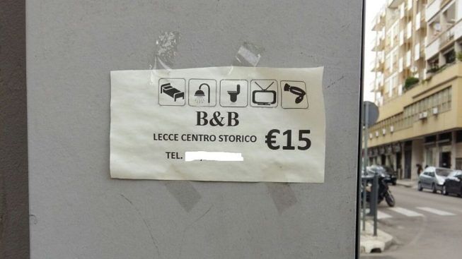 Nei giorni scorsi la Polizia Amministrativa ha snidato un altro B&B completamente abusivo nella centralissima zona Mazzini. Un monolocale con servizi, di pochi metri quadrati, offerto ad un prezzo inferiore alla media delle tariffe praticate sul territorio comunale e pubblicizzato mediante volantini artigianali affissi sui pali della pubblica illuminazione ed in altri luoghi fantasiosi qua e là per il centro della città. Tutti indizi di un'attività poco professionale.