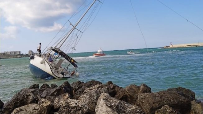 L’imbarcazione a vela, lunga circa 13 metri, si era incagliata sugli scogli sotto le mura della città dei Martiri e a bordo era presente una sola persona, di circa 80 anni, verosimilmente presa alla sprovvista dal forte vento di tramontana che soffiava sulla costa adriatica salentina.