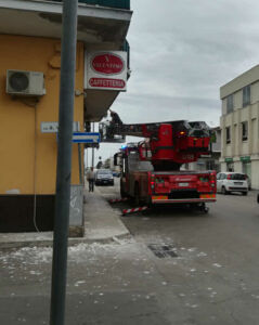 Dopo aver transennato e messo in sicurezza il tratto di marciapiede, i Caschi Rossi, muniti di autoscala e di piccozza, si sono portati sotto al balcone per picchettare e rimuovere il resto dell’intonaco ancora pericolante.