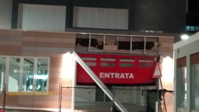 A causa del fortissimo vento registrato nel capoluogo nella giornata dell’Epifania, condizione atmosferica che ha costretto la Protezione Civile a diramare l’allerta arancio, infatti, dalla nuova costruzione, infatti, dai muri sono cadute diverse mattonelle. Non solo, le raffiche, infatti, hanno causato anche la caduta del copri tendone.