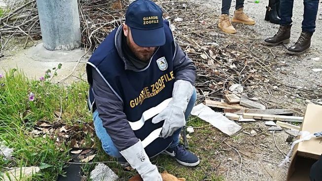 Accade a Santa Caterina, marina di Nardò, in una domenica piovosa di fine febbraio quale quella di ieri, quando un operatore ecologico intento a rimuovere i rifiuti nella mattinata, ancor prima di gettare una scatola nel bidone apposito, ha sentito dei guaiti.