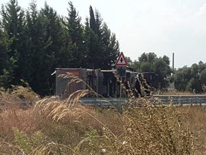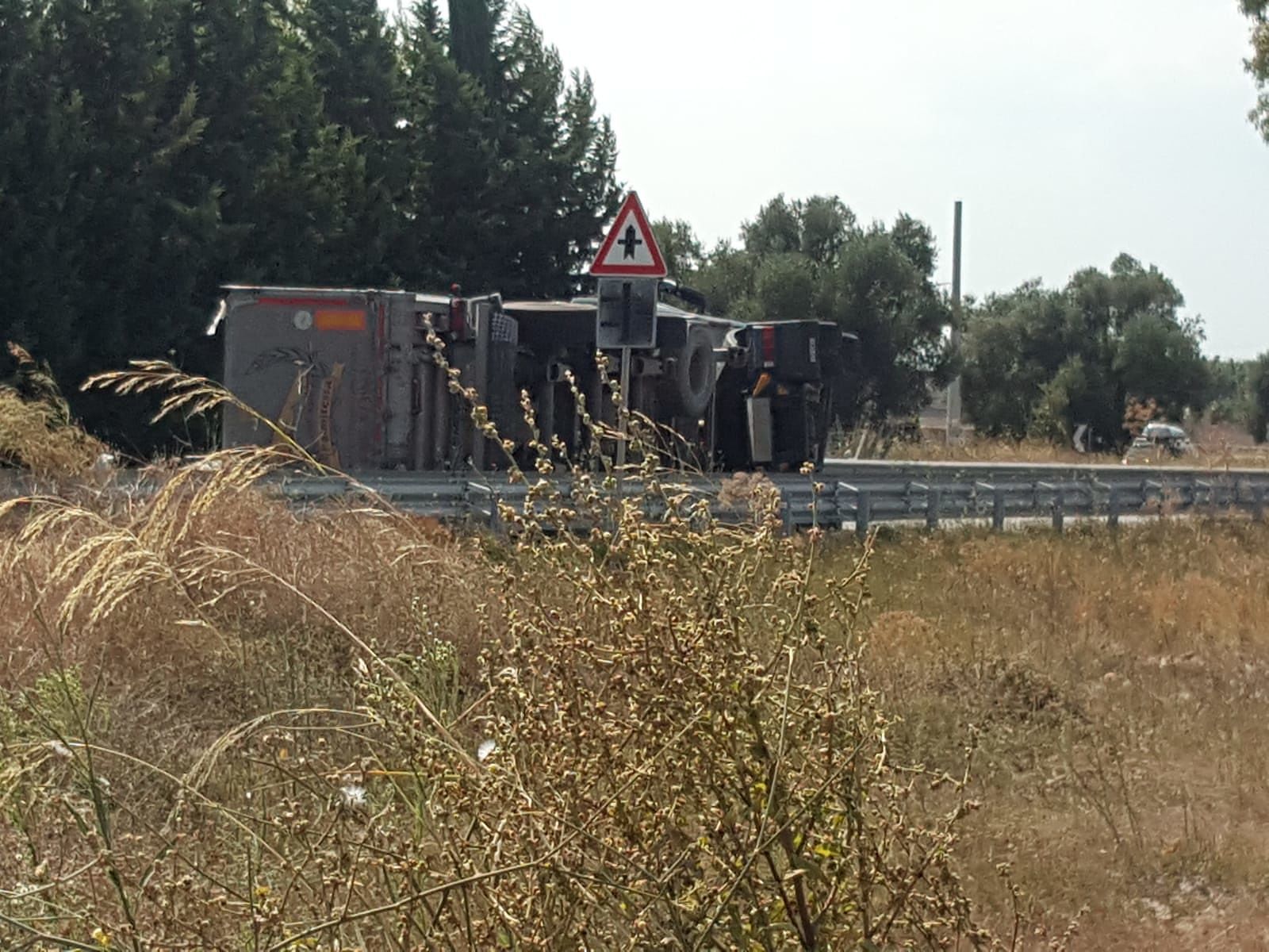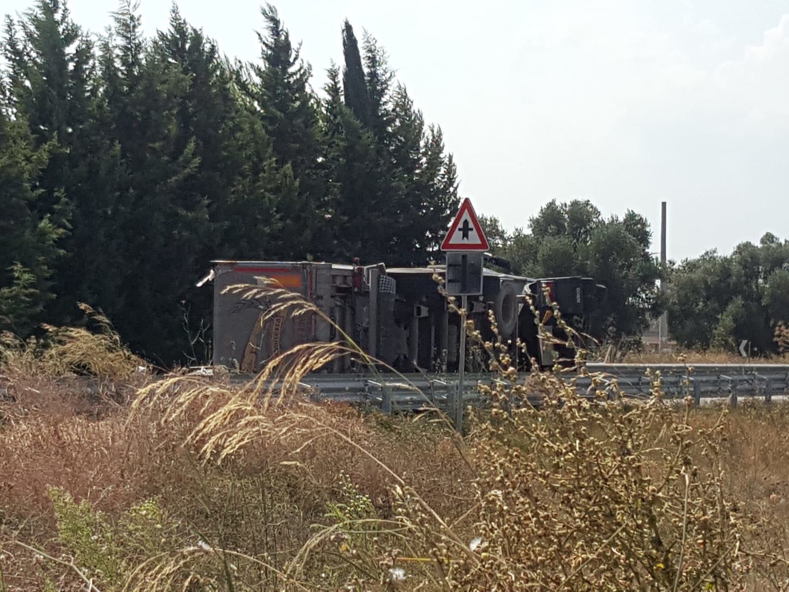 Sempre intorno alle ore 15.00, anche oggi, all’altezza della rotatoria situata all’entrata della strada, per cause ancora da chiarire, il conducente di un camion adibito al trasporto dei rifiuti, ha perso il controllo del mezzo ribaltandosi sulla carreggiata, senza coinvolgere altre autovetture.