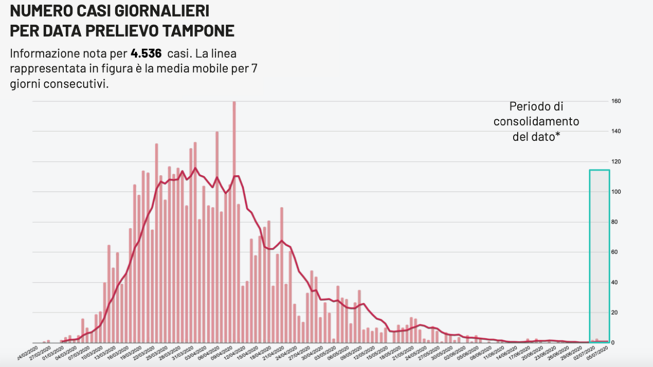 Il totale dei casi positivi Covid in Puglia è di 4.536 (su 188.242 test), così suddivisi: