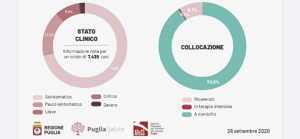 Secondo l’ultimo aggiornamento del bollettino epidemiologico della Regione su 3514 test per l’infezione da Covid-19 sono stati registrati 51 casi positivi: 27 in provincia di Bari, 5 in provincia BAT, 2 in provincia di Brindisi, 9 in provincia di Foggia, 6 in provincia di Lecce, 2 in provincia di Taranto.