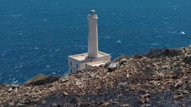 Lì dove sorge il primo sole d’Italia, a ridosso del leggendario faro, in uno dei luoghi di costa più belli della Puglia e del Mediterraneo, un incendio ha ridotto a cenere la macchia mediterranea e reso spettrale uno dei paesaggi più straordinari che si possano ammirare.