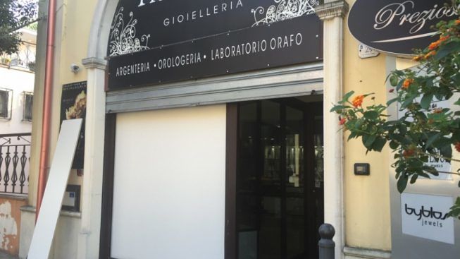 In quattro, in particolare, si sono presentati davanti al negozio quando erano da poco passate le ore 2.30: giunti a bordo di una Fiat Punto, hanno puntato la loro vettura di fronte alla vetrina principale dell’oreficeria e, con la vecchia tecnica dell’ariete, hanno sfondato la porta di ingresso direttamente con il retro della Punto, aprendosi così un varco.