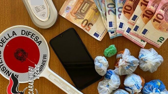 Arrestato in flagranza di reato anche un 26enne di Casarano, sorpreso dai carabinieri del n.o.r. mentre cedeva una dose da 1,31 grammi di marijuana un 21enne dietro la corresponsione della somma di denaro contante di 20 euro.