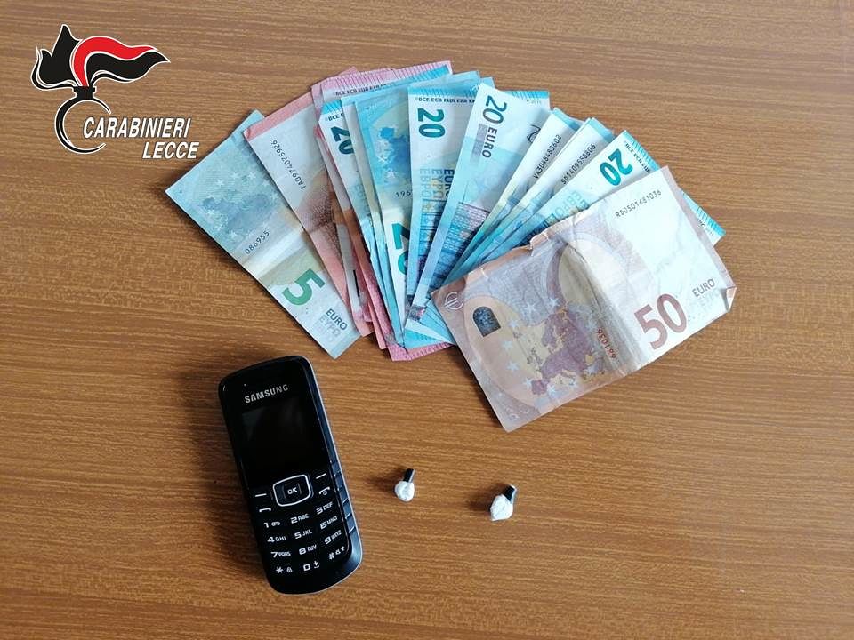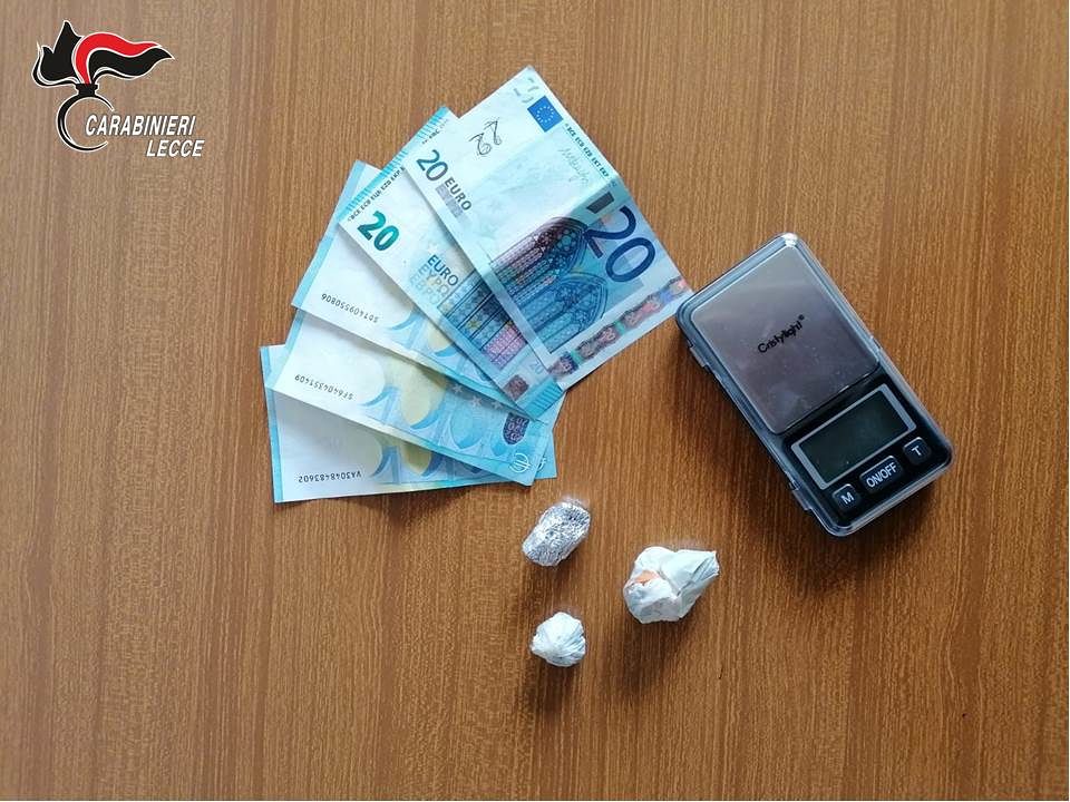 A Taviano, i Carabinieri della locale stazione hanno deferito in stato di libertà un ragazzo di Melissano che, a seguito di una perquisizione domiciliare, è stato colto in possesso di 7 dosi di cocaina per un peso complessivo di 1,6 grammi e 1.290,00 euro di denaro in contante.