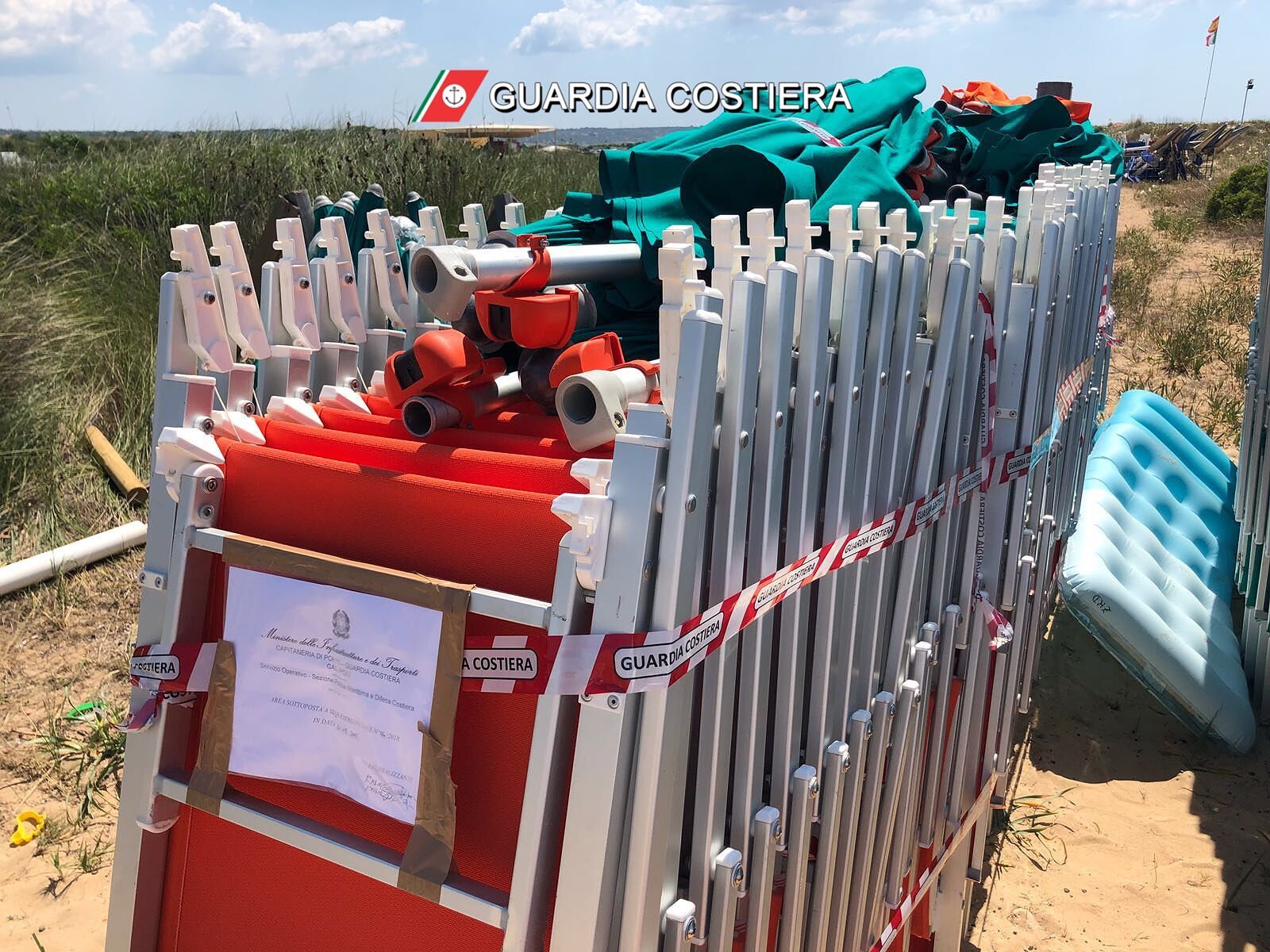 Grazie agli accertamenti svolti, gli uomini in divisa hanno accertato che “qualcuno” aveva posizionato sulla spiaggia libera ombrelloni e lettini, ma nessuno li aveva noleggiati. Numeri alla mano, la Guardia Costiera ha sequestrato sessanta ombrelloni e centodieci lettini che erano stati abusivamente posizionati dai titolari di due attività di noleggio che non avevano i titoli necessari per l’occupazione del demanio marittimo.