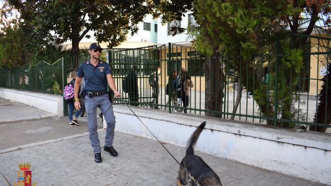 Altresì un’azione di carattere preventivo è stata effettuata con l’ausilio di un’unità cinofila proveniente da Brindisi che ha presidiato l’ingresso e l’uscita di due istituti scolastici, in questo caso non sono state rilevate violazioni o reati.