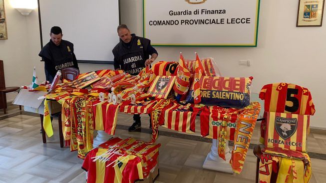 Le operazioni di servizio si sono concluse con il sequestro di circa 700 prodotti contraffatti o non sicuri recanti il marchio “U.S. Lecce” e con la denuncia all’Autorità Giudiziaria salentina di due persone con l’accusa di aver violato l’articolo 474 “introduzione nello Stato e commercio di prodotti con segni falsi” e 517 “vendita di prodotti industriali con segni mendaci” del codice penale.