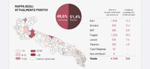 Il totale dei casi positivi Covid in Puglia è di 4.740, così suddivisi:
