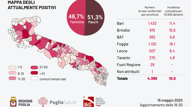 Quindi, i casi totali riscontrati in Regione dall’inizio dell’emergenza sono 4.366 (su 87.687 tamponi), così suddividi: